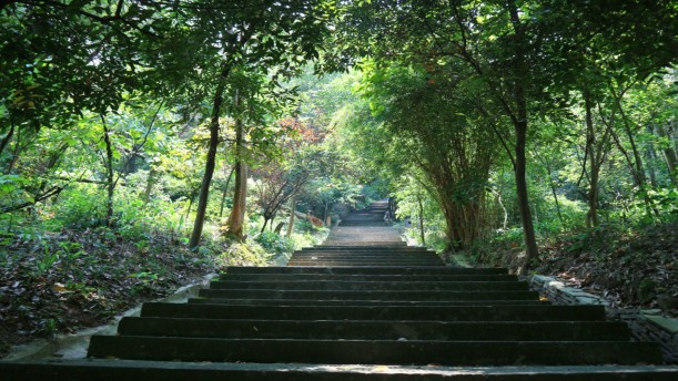 在清丽、幽深、古朴、旷达的背影,马蹄井、龙泉井、聪明泉、巴文化雕塑长廊忍不住说出我的羞怯:“渝西第一峰,山城绿宝石。