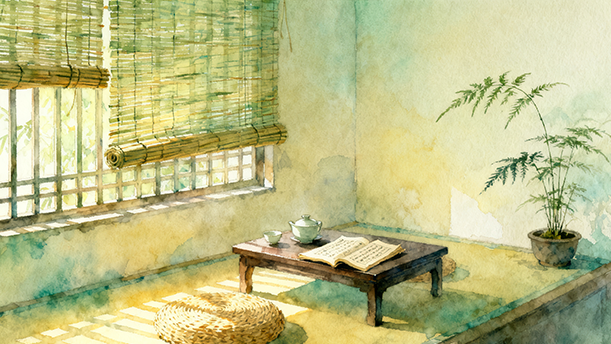 “可以调素琴,阅金经。无丝竹之乱耳,无案牍之劳形”,继续深化“陋室之雅”,写作者在陋室中的生活情趣,进一步凸显“安贫乐道”的心境。“调素琴”“阅金经”是作者的日常——弹奏不加装饰的素琴(“素琴”喻质朴的雅趣),阅读珍贵的佛经(“金经”喻精神的滋养),这两种活动都远离世俗的喧嚣,透着精神生活的充实;“无丝竹之乱耳,无案牍之劳形”则从反面衬托——没有世俗丝竹声的扰乱,没有官府公文的劳烦,“乱耳”“劳形”暗指官场的繁杂与功利,“无”字显作者脱离官场后的轻松与自在。这四句一正一反,既写“雅趣”,更藏“避俗”,让“安贫乐道”不再是空洞的口号,而是具体可感的生活状态。朗诵时需语调舒缓闲适,“调素琴”“阅金经”读得柔和,显生活的惬意;“无丝竹”“无案牍”读得释然,传递脱离官场的轻松,让声音中满是“不为外物所累”的超脱。