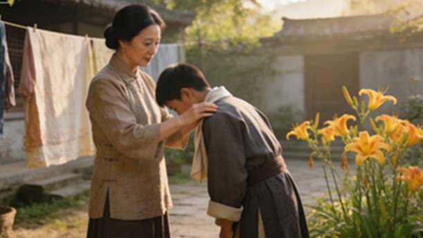 “迟迟归” 的担忧,让每一针都带着不舍。末句 “谁言寸草心,报得三春晖”,以寸草难报春晖作比,将母爱升华至无垠 —— 儿女的孝心再深,也难抵母亲恩情的万分之一。全诗无华丽辞藻,却字字泣血,把母爱织进针脚,缝进岁月,成为穿越千年的温暖回响。