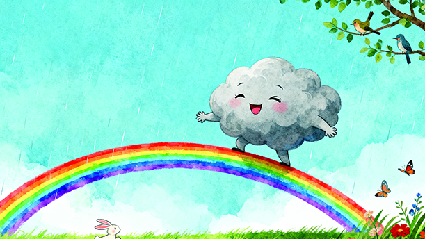 语气要先“沉”后“柔”:“生气了”读得稍显严肃,带点小嗔怪,像风婆婆叉着腰的样子;“掉了下来”读得轻缓,模拟乌云慢慢落下的感觉;“一滴滴小雨点”语调柔和,“滴滴”二字轻读,像雨滴轻轻落地,没有“生气”的凶感,反而藏着雨来的清新,让小游戏有个温柔的收尾。