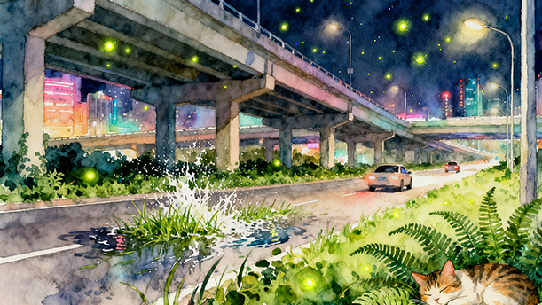 绿茸茸的房子,盖满叶子。夏天好阴凉。蜜蜂、蜻蜓在绿房子上飞着,憩着。