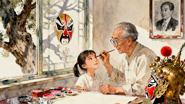 爷爷说京剧是生活的剪影、中国的国粹、东方的歌剧。现在只要我一有空,就在爷爷面前来上几段,我知道,这是一段情结,更是一份传承。