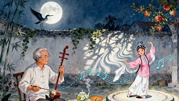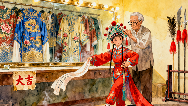 那时我还小,总喜欢多嘴问爷爷:“爷爷您为什么这么喜欢京剧呢?”看着我一脸天真的面容,爷爷会心地笑了:“乖孙女,京剧呀,已经成为我身体的一部分了,已经不能失去了。”