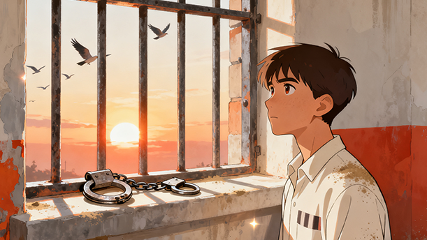 语气需沉缓却坚定,先抑后扬。“带镣长街行”读得平实,“蹒跚复蹒跚”的“蹒跚”二字稍作拖音,模拟负伤行走的艰难,凸显肉体的痛苦与敌人的残忍;“市人争瞩目”读得平静,不避众人目光;“我心无愧怍”的“无愧怍”三字重读,语调上扬,掷地有声,将敌人“示众羞辱”的意图彻底击碎,传递出“行得正、坐得端”的坦荡,即便身陷囹圄,信仰从未动摇。