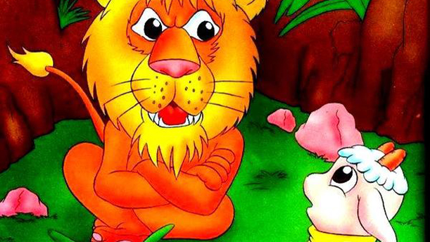 狮子听了,吓得不得了。他相信山羊真的是来吃他的,就推说要到河边去洗脸,从洞里溜出去了。