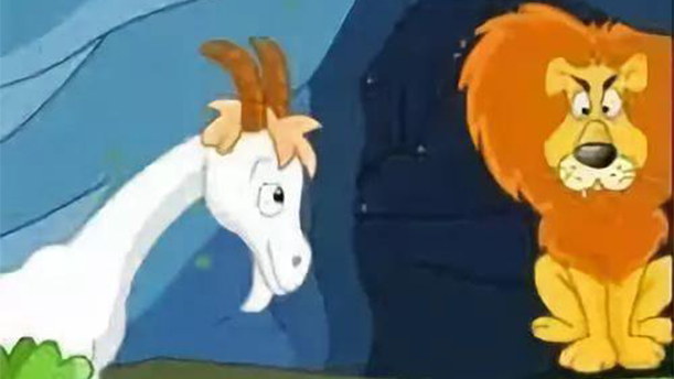 这时候,老山羊迅速溜出山洞,逃出了狮子的爪牙。