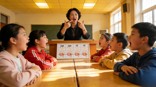 在实际发音中,这种“声母j、q、x的发音部位稍微偏前”的特点,使得徽方言区的人在学习普通话时,容易将普通话中的j、q、x读得接近z、c、s或者zh、ch、sh,例如把“家(jiā)”读得像“zā”或“zhā”,把“去(qù)”读得像“cù”或“chù”,把“小(xiǎo)”读得像“sǎo”或“shǎo”。而“n和l不分”则表现为在普通话中本该发n声母的字,如“男(nán)”“女(nǚ)”“脑(nǎo)”,常被读成l声母,说成“lán”“lǚ”“lǎo”;反之,一些本该发l声母的字,如“蓝(lán)”“绿(lǜ)”“老(lǎo)”,也可能被读成n声母,变成“nán”“nǜ”“nǎo”,这种混淆在日常交流中很容易造成误解。针对这些典型的发音问题,需要进行有针对性的对比训练和发音矫正,帮助学习者准确掌握普通话中j、q、x以及n、l的发音方法和部位。