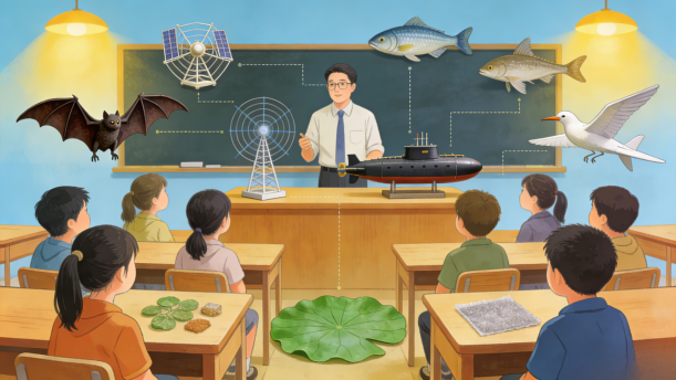 人类的老师科学家研究了蝙蝠飞行的秘密,从中得到启示,发明了雷达。可以说,蝙蝠是人类的“老师”。其实,自然界可以充当人类“老师”的生物何止蝙蝠一种?人类自古就想像鸟儿一样飞上蓝天。科学家认真研究了鸟类飞行的原理,终于在1903年发明了飞机。30年以后,由于飞机速度的不断提高,经常发生机翼因剧烈抖动而破碎的现象,造成机毁人亡的惨祸。过了好久好久,人类才找到了防止这类事故的方法。其实蜻蜓早就解决了这个问题。原来,每只蜻蜓的翅膀末端,都有一块比周围略大一些的厚斑点,这就是防止翅膀颤抖的关键。要是早知道这一点,科学家可以少花多少精力啊!现在,飞机设计师吸取了这一教训,注意研究苍蝇、蚊子、蜜蜂等的飞行方法,造出了许多具有各种优良性能的新式飞机。