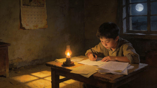 一天早上,父亲对他说:“叙利奥!你怎么啦?你和从前相比,不是变样了吗?注意呀!一家人的希望都在你身上呢,你不知道吗?”叙利奥出世以来第一次挨骂,心里很难受。他想:“不能做下去了,非停止不可。”可是这一天晚饭时,父亲很高兴地说:“这个月比上个月多挣了六元四角钱呢!”他从抽屉里拿出一袋糖果来,说是买来庆贺一下的。孩子们都很高兴。叙利奥也重新振作起来,暗暗对自己说:“还是继续下去。白天多用功,夜里仍旧工作吧!”父亲接着说:“只是这个孩子——”说到这里指着叙利奥,“他实在使我伤心!”