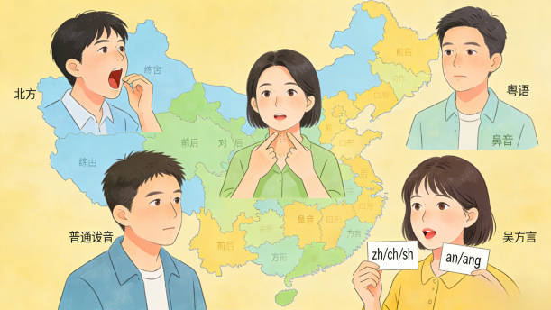 不同方言区的人们在学习普通话时,往往会受到母语方言语音习惯的影响,出现平翘舌不分、前后鼻音混淆、声调不准确等问题。