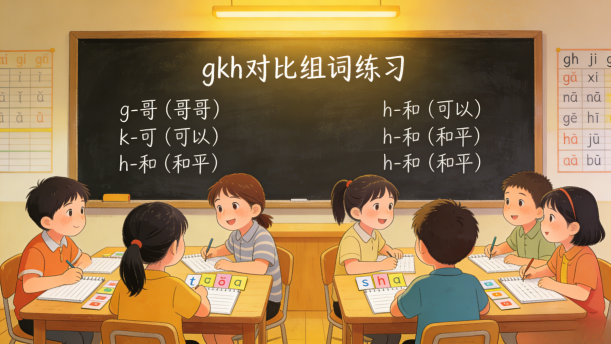 在进行上述词语练习时,建议采用由慢到快、由轻到重的方式逐组朗读。首先,每个词语都要清晰发音,注意舌根与软腭的有力接触和准确爆破,感受g音的干脆、k音的送气以及h音的清擦。