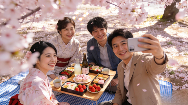 人们会在樱花树下铺上野餐垫,带上清酒、点心,与家人朋友一同“花见”,享受这短暂而美好的时光。樱花的品种也极为丰富,常见的有染井吉野樱、山樱、八重樱等,其中染井吉野樱因为花色淡雅、花量繁茂,成为日本最具代表性的樱花品种,富士山前的这片樱花,很多便是这种盛开时能形成一片粉色海洋的染井吉野樱。