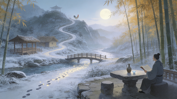 鸡声茅店月,人迹板桥霜。