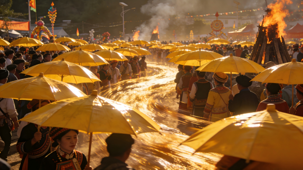 朗诵要领:舒缓的节奏,声音自然流畅,平稳而富有深情。 背景提示:短文以"伞"为眼,描述了彝人的风土人情和色彩斑斓的生活风貌。 彝人喜爱的伞,是一种黄色的油布伞。晴也遮阳,阴也挡雨。火把点燃...