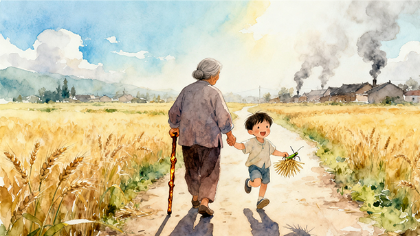 是鸽哨儿?是秋风?是落叶划过屋檐?或者,只是奶奶在轻轻地哼唱?直到现在我还是说不清。“噢噢——,睡觉吧,麻猴来了我打它……”那是奶奶的催眠曲。屋顶上有一片晃动的光影,是水盆里的水反射的阳光。光影也那么飘飘的、缓缓的,变幻成和平的梦境,我在奶奶怀里安稳地睡熟……