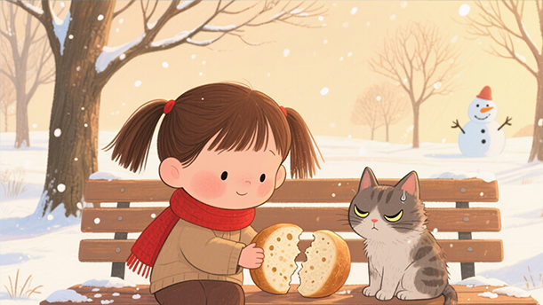 给小鸟掰了一小块