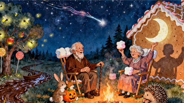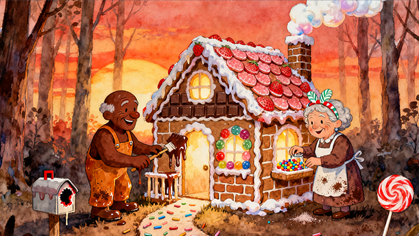 很久很久以前,有一个用糖果做的小屋子,里面住着巧克力爷爷和糖果奶奶。