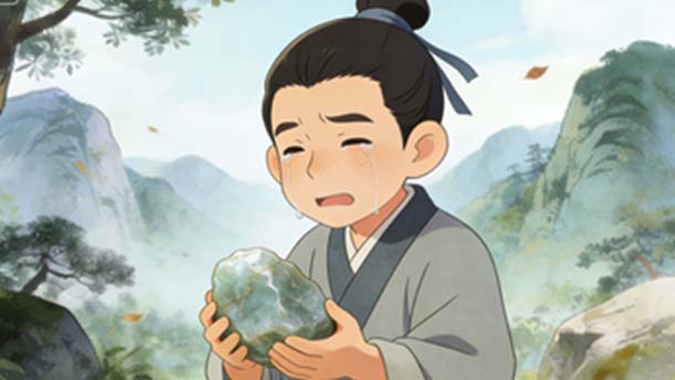 失去了双脚的卞和,捧着那块石头泪流满面。他想:这无价之宝难道真的要永远被埋没吗?