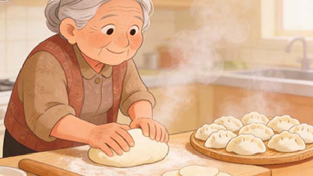 姥姥有一双勤劳的手,姥姥的手总是闲不住。做饭、擦地、喂鱼……家里被收拾得井井有条、一尘不染。我还特别喜欢吃姥姥包的鲅鱼蒜苗饺子。那些美味呀,想起来我就流口水。只要有姥姥在,我们全家顿顿都能吃到美味可口的饭菜。