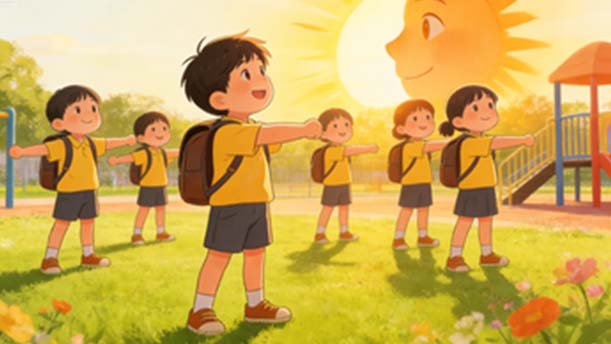 朗诵提示:这首诗6个小段,比较适合多人朗诵。朗诵时的情感和语调是一个由抑到扬的过程,语气是一个由收到放的过程,把孩子们“比太阳起得早”的计划和决心读出来。从“比”到“看”,再到“情”,激发孩子们对阳光、对自然、对生命、对祖国真挚的热爱,帮助孩子们树立“少年强则国强”的信心信念。朗诵时,语调要欢快轻盈,语气要昂扬自信。