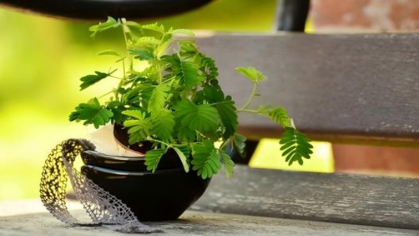 含羞草种在一个精致的花盆里,主人将它放在客厅里。因为它经常自我陶醉,得意洋洋,所以人们都叫它得意草。