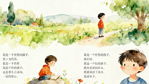 我是一个任性的孩子 顾城 也许 我是被妈妈宠坏的孩子 我任性 我希望 每一个时刻 都像彩色蜡笔那样美丽 我希望 能在心爱的白纸上画画 画出笨拙的自由 画下一只永远不会 流泪的眼...