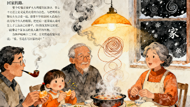 小诗《回家的路》以一个务工人员子女的身份,表达了孩子在过年返乡前思念故乡,迫切要回到故乡的激动的心情。朗诵时,尽量还原孩子的语气,语速可以稍快,把思念家人、思念家乡的情绪读出来。