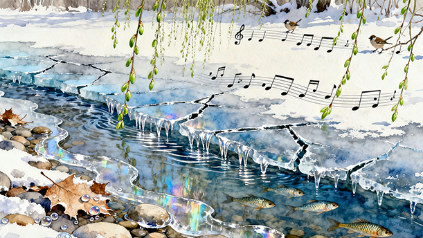 这首诗的题目是《初春》,所以没有花的洪流,没有鸟的歌瀑,还有的是寒意和霜似的烦恼。但毕竟春天已经来到,眼前的料峭必定会被温暖的阳光驱散。作者坚定地相信这一点。朗诵时,所持情感是坚定的向往,没有失望、没有消沉、积极向上,语气坚定,语速适中。