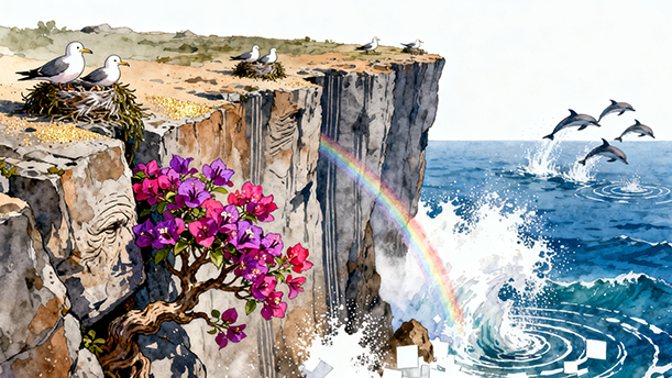 这首长诗,从远到近、从宏大到细微,表现着“岛”这个意象的坚韧不屈,风刀霜剑严相逼,却依然坚实丰饶,沉稳又骄傲。朗诵中,需要把握“岛”这个核心意象所代表的生命力,千年万载过去,留下岁月的足迹,走的走、留的留,可生命依然在继续。本诗的基调是沉稳有力的,朗诵时的语气、语调、语速不宜过快,需要均匀且具有默默无语的力量感。