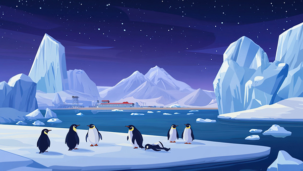 绅士一般在雪地上行走,种下一对企鹅的爱