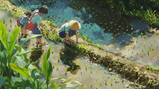 禾苗是碧绿的,