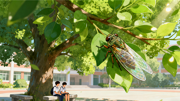 这首诗很有画面感,像是在欣赏一个老朋友的模样,又像是在和一个老同学聊天。同学们长在教室里面,树长在教室外面,一样的向上,一样的茁壮。朗诵第一小节时,用轻快明亮的声音,中阶语速,读出学习的快乐,享受读书的快意、舒适;第二小节采用“抑抑—扬扬”的朗诵方式,表达出成长的幸福,排比句情感层层推进,"拥抱”“放飞”“眼睛”“心形”加重、拉长,读出成长的茁壮与温暖。