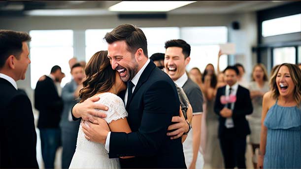 随后,他开始放声大笑,我们移动脚步,投入了对方的怀抱。