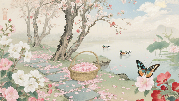 作为盛唐山水田园诗的代表,孟浩然的诗歌向来以“自然冲淡”著称,《春晓》便是典型。全诗没有复杂的意象、深奥的典故,只写清晨醒来的日常片段,却让春日的生机、人的闲适与对落花的惋惜自然交融,如一幅淡淡的水墨画,初看简约,细品却满是韵味。它之所以能流传千年,正因为它写出了人们共通的春日体验——每个人都曾有过春日酣眠的慵懒,都曾听过清晨的鸟鸣,也都曾为落花惋惜,这份“人人心中有,人人笔下无”的共鸣,让《春晓》成为跨越时空的春日赞歌,即便在今日读来,依然能让人瞬间沉浸在那份清新闲适的春日氛围中。