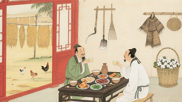 开轩面场圃,把酒话桑麻。