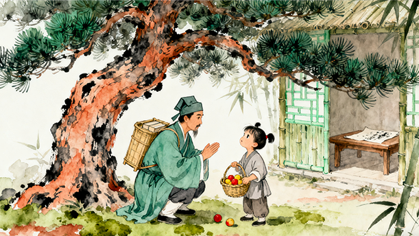 开篇“松下问童子”,以极简的场景切入,却暗藏画面的清幽与心境的轻快。“松下”二字先设定了环境——苍松之下,自带隐士居所的清雅幽静,仿佛能想见松针苍翠、光影斑驳的画面;“问童子”则点明人物与动作,诗人寻隐者未见,转而向其弟子问询,动作间透着礼貌与期待。此时的诗人尚满怀希望:既已找到隐者的居所附近,见到其弟子,想来与隐者相见不远。朗诵时需带出这份“轻快感”,语气可稍显平和上扬,传递出诗人初见童子时的从容与期待,让“松下问语”的画面如在眼前。