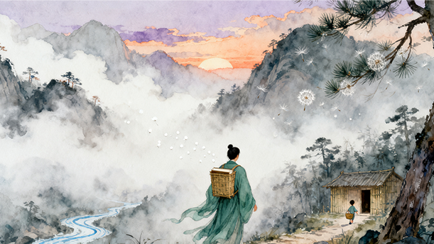 结尾“云深不知处”,将最后的希望彻底打散,心境落于“怅然若失”的无奈。童子的最终回答,点出了“寻而不得”的核心原因——山中云雾浓密,即便知道隐者在山中,也无法确定具体位置,寻觅终究是徒劳。“云深”二字既是对山林环境的写实(山高雾浓,视野受阻),更是对“求而不得”的隐喻:隐者如云雾般缥缈难寻,诗人对“归隐境界”的向往,也如“云深不知处”般模糊难及。这一句没有激烈的抒情,却以“不知处”的留白,将诗人的怅然、无奈与对隐者的愈发向往,尽数藏于云雾之中。朗诵时需将语气沉缓下来,声调低平,气息绵长,用“无奈感”收束全诗,让“云深雾绕”的迷茫与怅然,在声音中缓缓弥漫,留下悠长的余味。