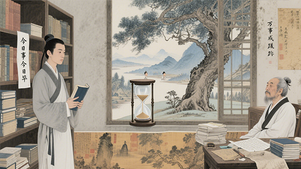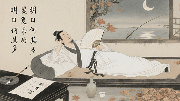 诗人在创作中巧妙地运用了多种艺术手法,先以平实的语言勾勒出世人拖延的普遍状态,引起读者共鸣;接着笔锋一转,以严厉的口吻指出拖延将导致的人生遗憾,激发读者的警醒;随后通过描绘水东流、日西坠的生动画面,将抽象的时间具象化,使读者仿佛亲眼目睹时光的匆匆;最后以反问句收束全篇,既是对前文的总结,也是对读者的直接呼唤,让珍惜时间的理念如春风化雨般渗入人心。整首诗情感真挚,说理透彻,具有极强的感染力和教育意义。