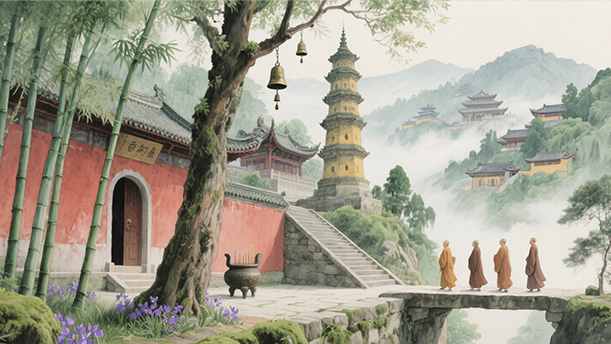 诗中“千里莺啼绿映红”一句,以宏大的视角描绘出江南大地处处莺歌燕舞、桃红柳绿的盎然生机,让人仿佛置身于一片生机勃勃的春日画卷之中。“水村山郭酒旗风”则进一步勾勒出江南水乡特有的风貌,依山傍水的村庄、错落有致的城郭,还有那随风招展的酒旗,动静结合,充满了生活气息。而后两句“南朝四百八十寺,多少楼台烟雨中”,笔锋一转,由眼前的自然美景过渡到对历史的追思,那众多的寺庙在烟雨中若隐若现,仿佛在诉说着南朝曾经的繁华与兴衰,让人不禁感叹历史的无常和岁月的沧桑。朗诵此诗,需准确把握这种情感的变化,才能将诗中的意境完美地展现出来。