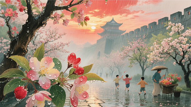 在朗诵过程中,还需注意诗句之间的停顿与连贯。首联与颈联之间,可稍作停顿,以体现诗句的层次感;而颈联与颌联之间,则要保持一定的连贯性,以展现春雨连绵不断的意境。同时,朗诵时要融入自己的情感,将诗人对春雨的喜爱、对静谧氛围的陶醉、对希望与光明的向往,以及尾联中的欣喜与赞叹,都通过声音传递出来,使听众能够感受到这首古诗的独特魅力。