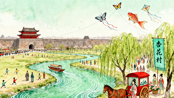 韩愈的《春游曲》是一首明快鲜活的初春咏景诗,全诗四句仅二十字,却以极简的笔触勾勒出“春风拂杏、花映碧波”的春日盛景。诗人没有堆砌繁复辞藻,只聚焦“江边杏”“一夜风”“深浅色”“绿波”四个核心意象,便将初春的清新与绚丽写得扑面而来,既藏着对春光的敏锐捕捉,更透着踏春时心旷神怡的愉悦,堪称“以简驭繁、情景交融”的春日短章精品。