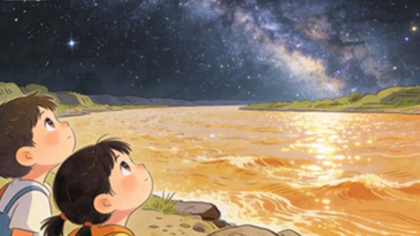 既延续了前两句的豪迈气魄,又以浪漫的神话传说,给壮阔的黄河添了几分童趣与瑰丽,让全诗既有山河的雄奇,又有想象的轻盈,读来明快又充满张力。