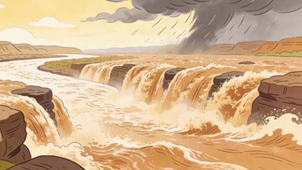 鉴赏:《浪淘沙》是刘禹锡以豪迈笔力写黄河与浪漫想象的佳作:开篇“九曲黄河万里沙,浪淘风簸自天涯”,先铺展黄河的壮阔——曲折的河道裹挟万里泥沙,浪涛被狂风簸荡着从天涯奔涌而来,“九曲”“万里”衬出黄河的磅礴气势,“浪淘风簸”则写尽水流奔腾的雄健动感。