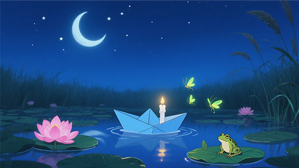 我不知道天上有我的什么游伴把这些船放下来同我的船比赛!夜来了,我的脸埋在手臂里,梦见我的纸船在子夜的星光下缓缓地浮泛前去。