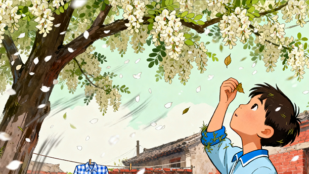 末节情感彻底爆发,从对树叶的凝视转向对故国的直接呼唤:“故国哟,啊啊,要到何年何月何日才能让我再回到你的怀抱里”。“啊啊”的语气词打破了前文的克制,将压抑六年的思乡之情倾泻而出。结尾“飘着淡淡的槐花香的季节”,与开篇“最美的槐树叶”形成呼应,构建出一幅具体而温暖的故乡图景,让盼归之情有了真切的落点。