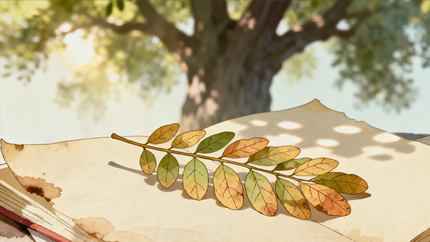 树叶的价值更藏在细节之中:“被夹在一册古老的诗集里,多年来,竟没有些微的损坏”,“古老的诗集”为树叶增添了文化厚重感,暗示着诗人与故土文化的精神联结;而“细看时,还沾着些故国的泥土哪”一句,堪称全诗的点睛之笔——泥土是故乡最直接的印记,这一点泥土让树叶从普通信物升华为故国的象征,成为诗人触摸故乡的唯一媒介。正如叶橹所言,这片槐树叶“貌似单纯,实则繁复”,既承载着个人记忆,也凝聚着家国情怀。