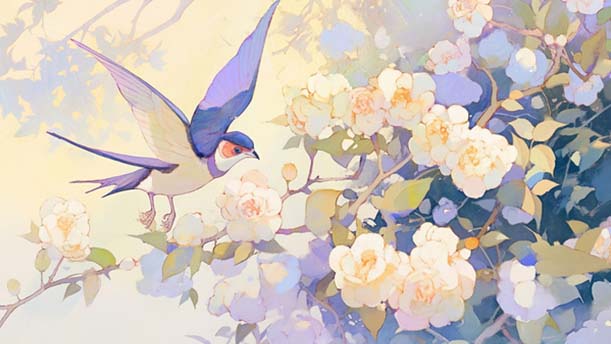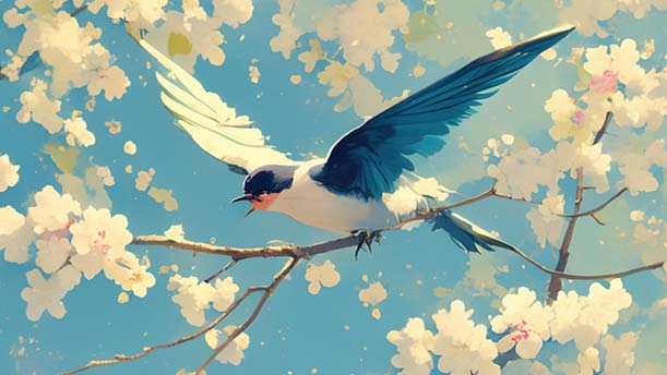 让我们换上春装,像小鸟换上新的羽毛,飞过树林,飞上山冈,到处有春天的欢笑。