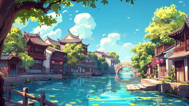 这首《水乡歌》以简洁明快的语言和生动的描绘,展现了水乡丰富的自然景观和人文特色。全诗分为三个小节,每节以“水乡什么多?”作为开头,形成了鲜明的问答结构,使得诗歌节奏明快,易于诵读。首节写水多,通过“千条渠,万条河,池塘一个连一个”的描绘,将水乡水网密布的景象展现得淋漓尽致,而“处处绿水荡清波”则进一步以生动的画面感,让人仿佛置身于那清澈碧绿的水乡之中。