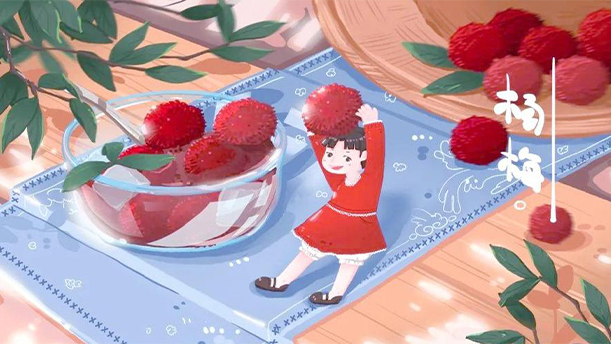 杨梅先是淡红的,随后变成深红,最后几乎变成黑的 了。它不是真的变黑,而是因为太红了,所以像黑的。你 轻轻咬开它,就可以看见那新鲜红嫩的果肉,嘴唇上舌头