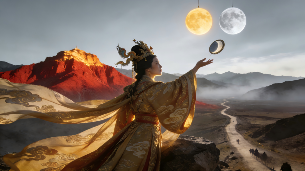 1300多年前,文成公主入吐蕃时经过这片赤岭,登临山顶东望长安。在苍茫的汉藏古道上,她毅然抛下了日月镜。镜子一分为二,化为金日银月,“赤岭”因此改名“日月山”,山顶建起两座遥遥相望的日亭和月亭。千年前旅人的足迹早已消失在茫茫荒野中,日华与月影却依旧当空,日也未换,月也未改。